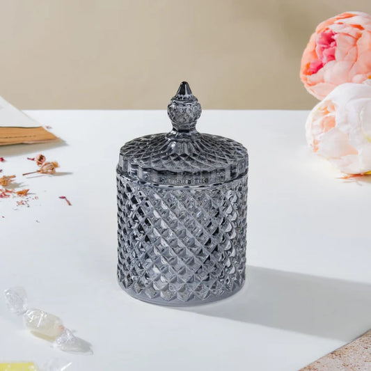 Vintage Diamond Glass Jar With Lid Grey 250ml
