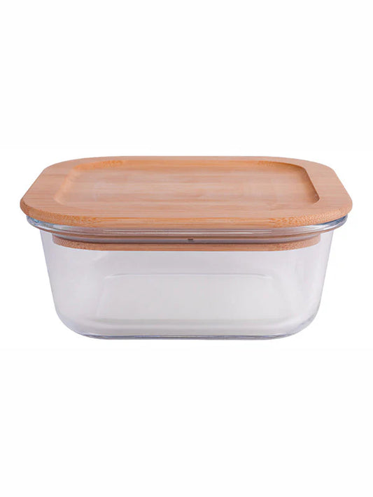 Square Glass storage box with Air tight Wooden Lid - Set of 3pcs