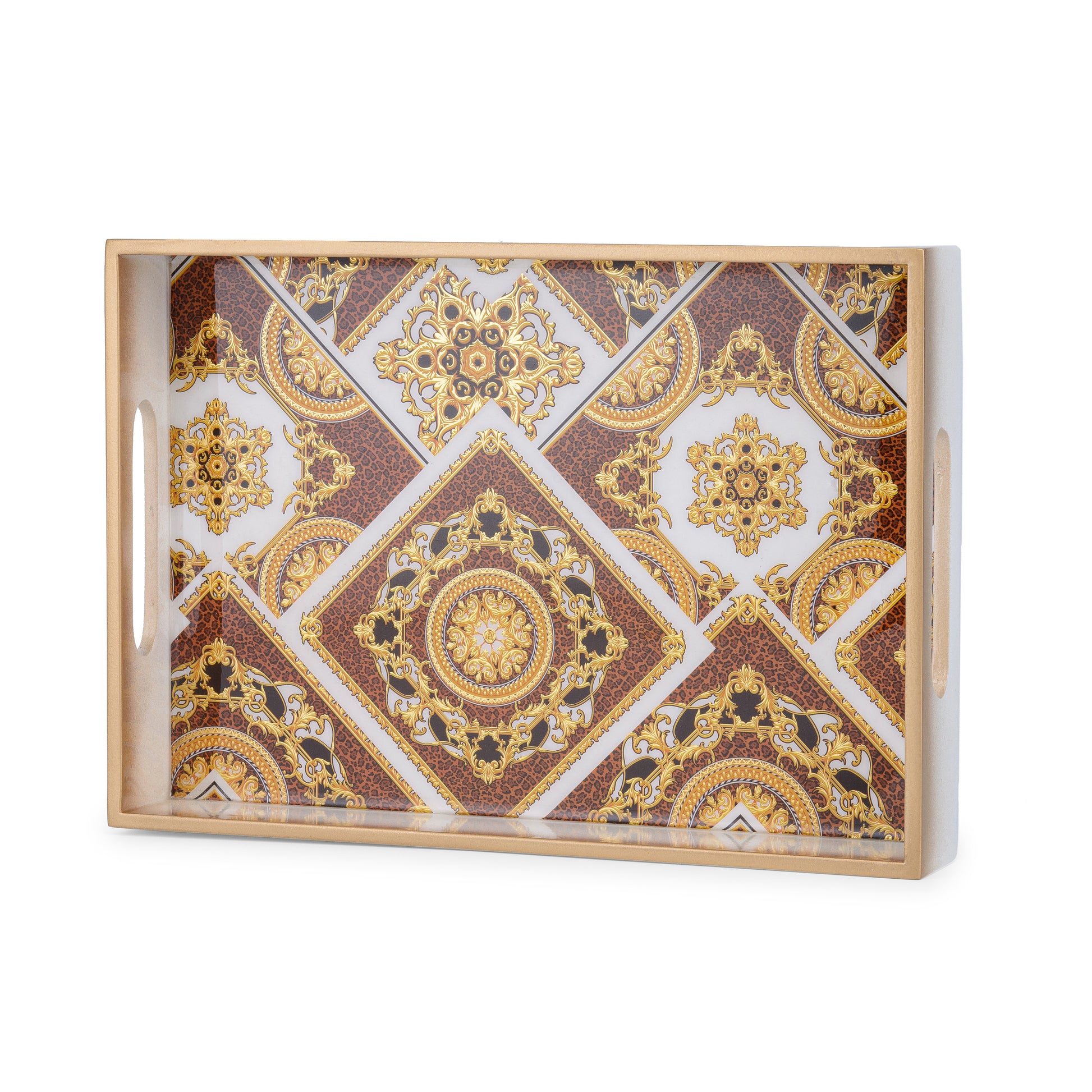 Look: The glossy golden design provides an attractive look to the tray.