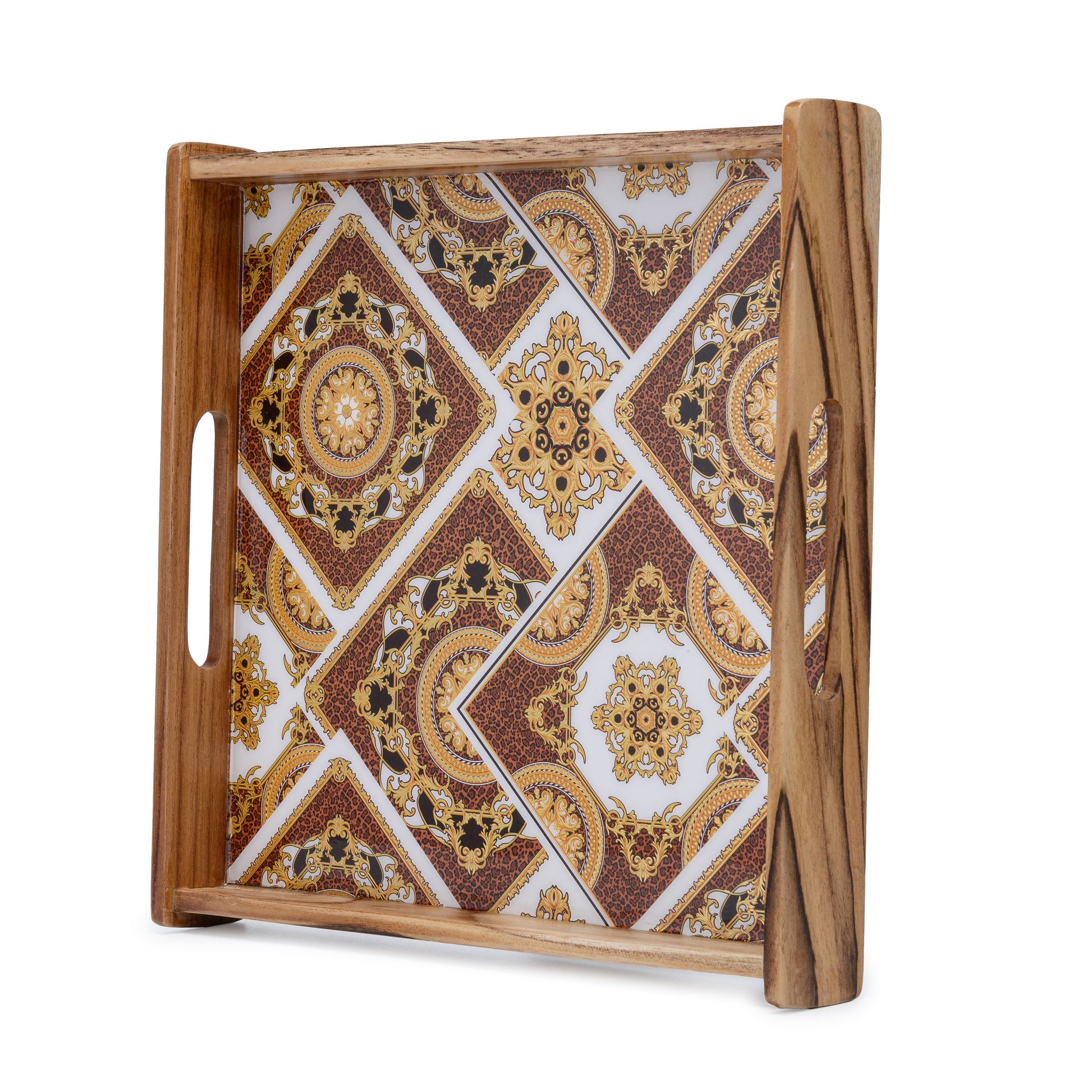 Bring onto your table the persona of premium quality teak wood trays with a vintage golden design of, ‘Classico indiano’.
