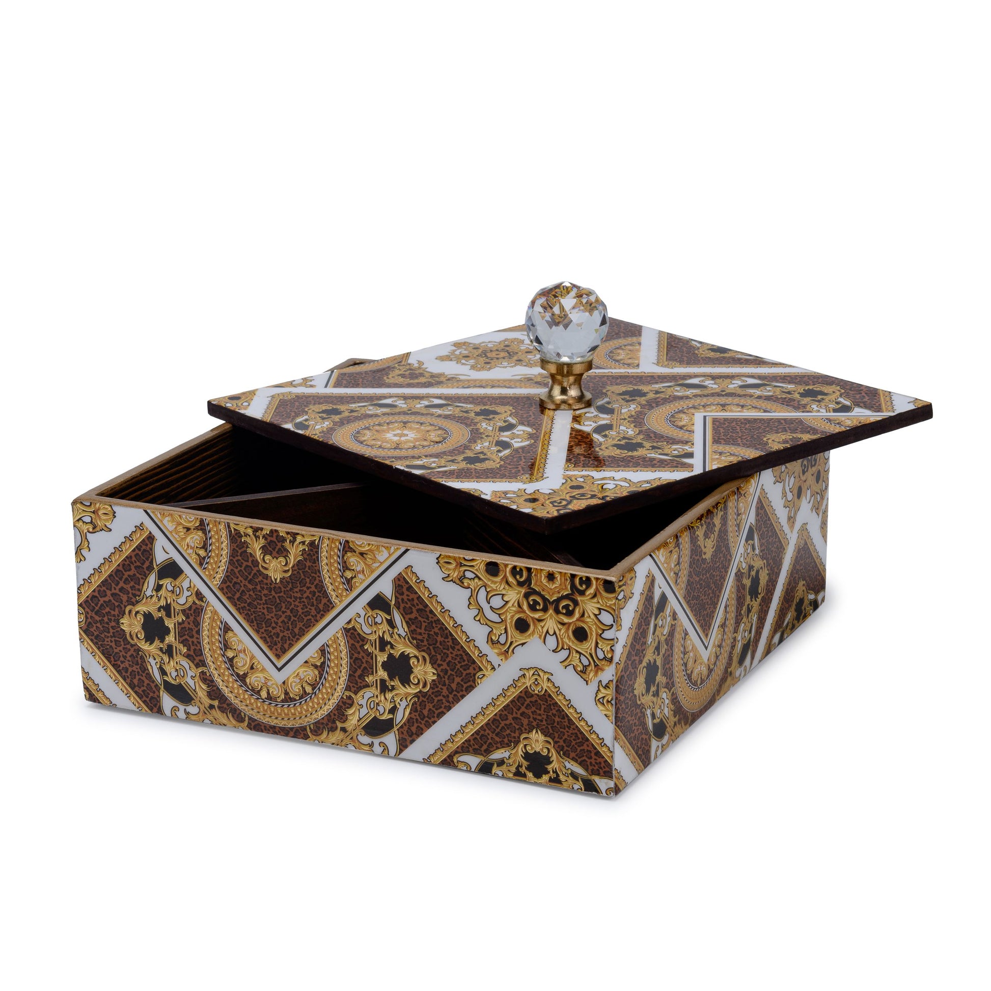 Bring onto your table the persona of a premium quality wooden storage box with a vintage golden design of, ‘Classico indiano’.