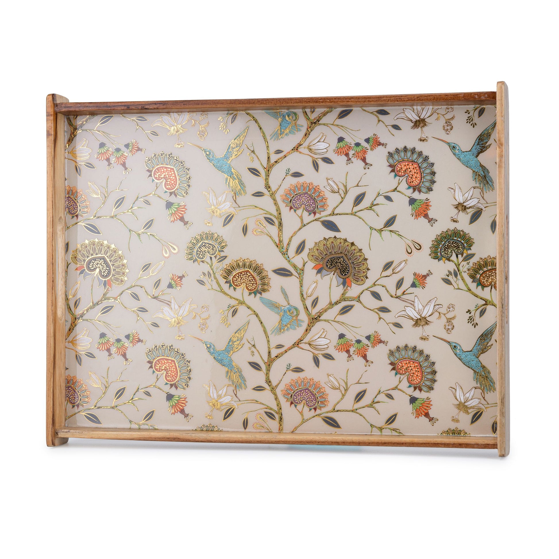 Bring onto your table the persona of a premium quality teak wood tray with a vintage golden design of, ‘Gardenia exotica’.