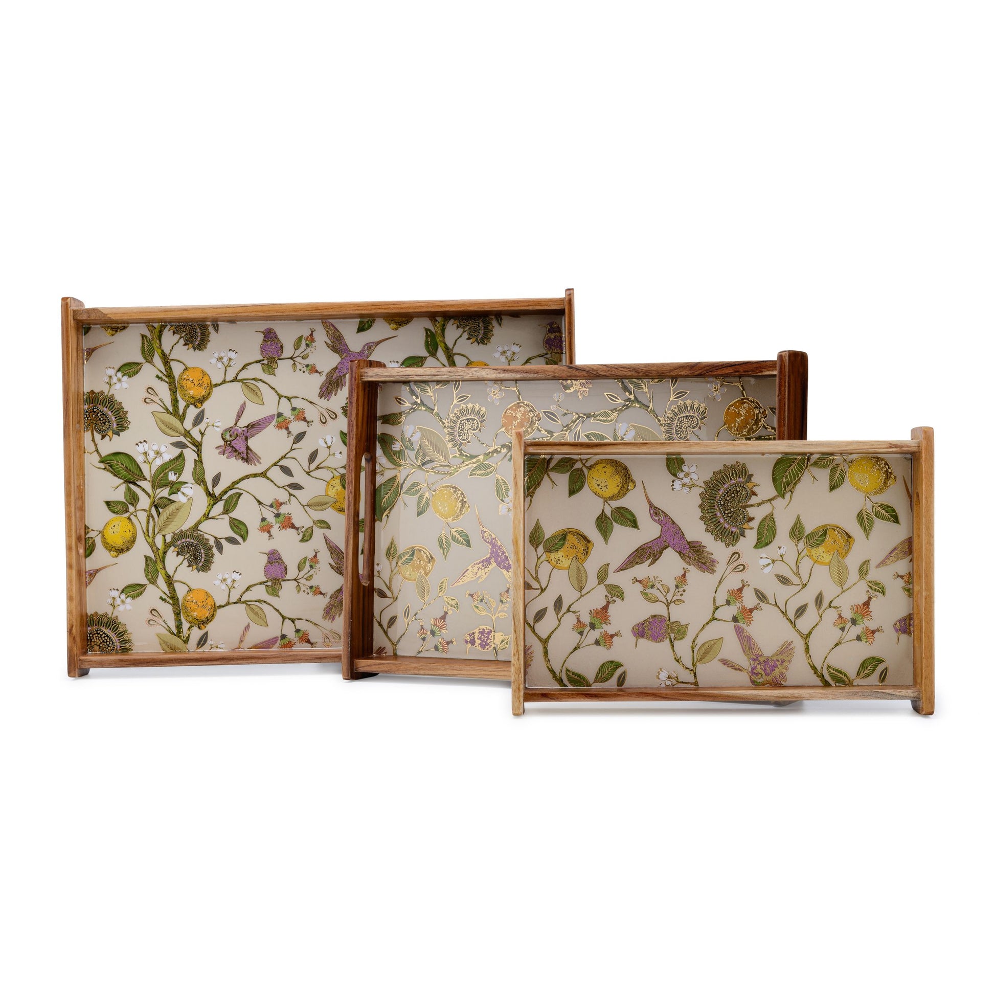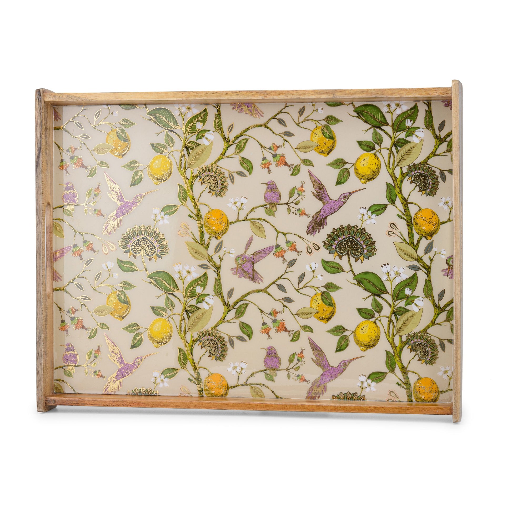 Material: The frame of the tray is made up of premium quality teak wood. The base of the tray is made up of laminated mdf with resin coating.