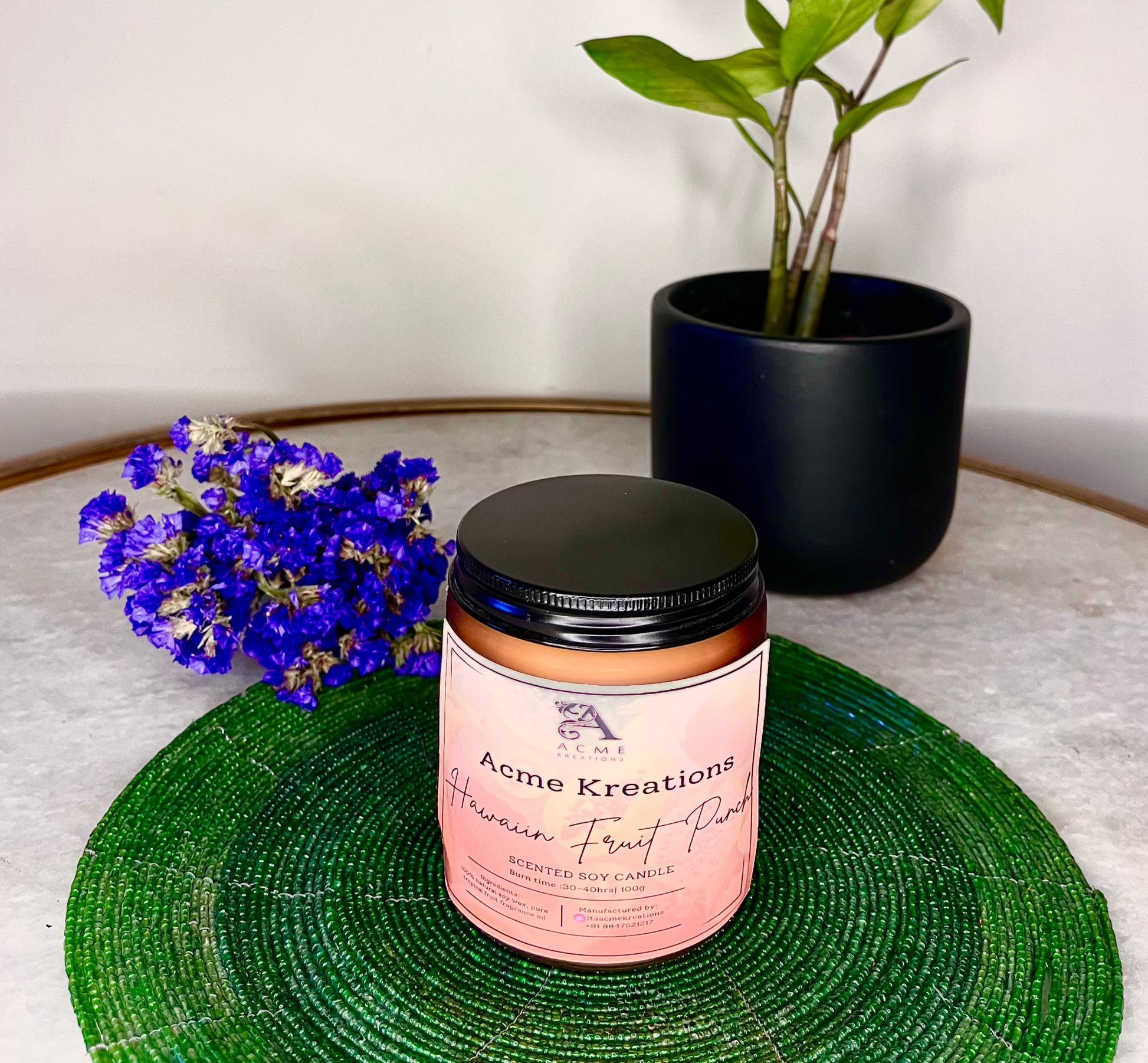 Embark on a sensory journey to the lush Hawaiian islands with our scented candle, inspired by tropical fruits bursting with vibrant flavors. Experience the tantalizing blend of juicy pineapple, exotic mango, and zesty citrus, creating a symphony of tropical delight. Each flicker of the flame releases a wave of fruity fragrance, transporting you to sun-kissed beaches and swaying palm trees. Elevate your space with the essence of Hawaiian paradise, where every breath captures the essence of a tropical getaway, filled with warmth, joy, and relaxation.