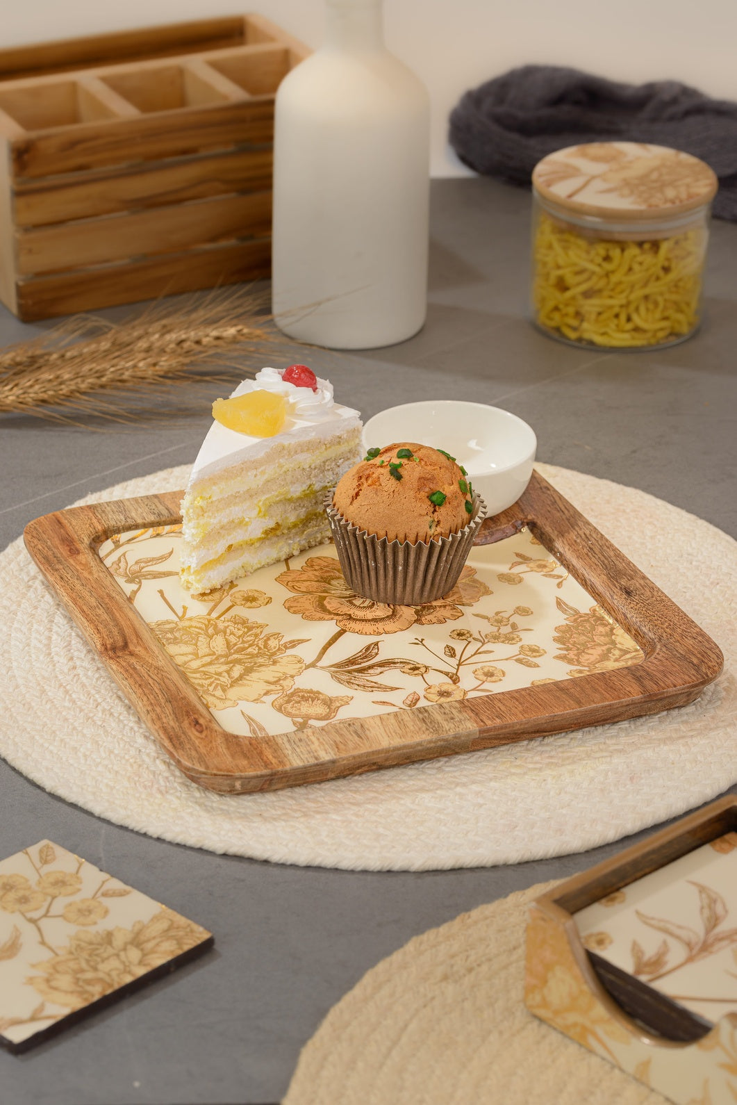 Wooden platter: The durable platter with food grade & heat resistant coating is perfect for hot or cold snacks.
