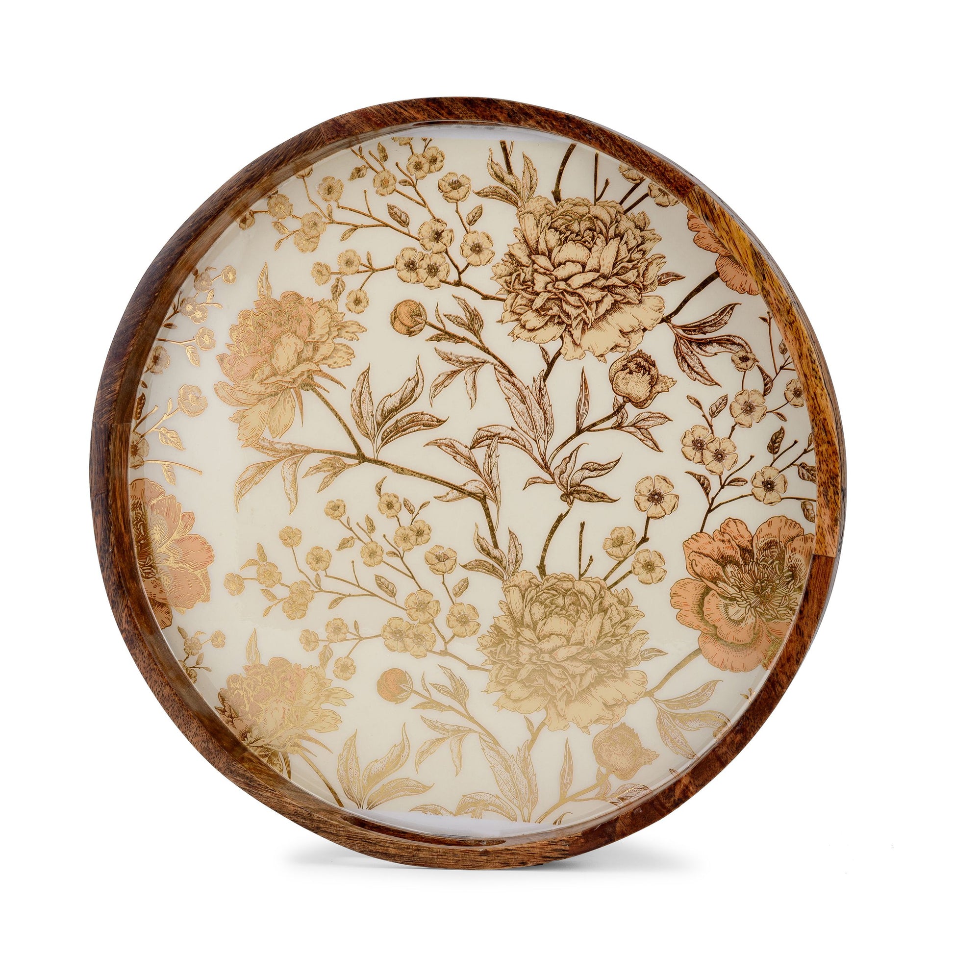 Bring onto your table the persona of premium quality mango wood trays with a vintage golden design of, 'Rosa Victoria’.