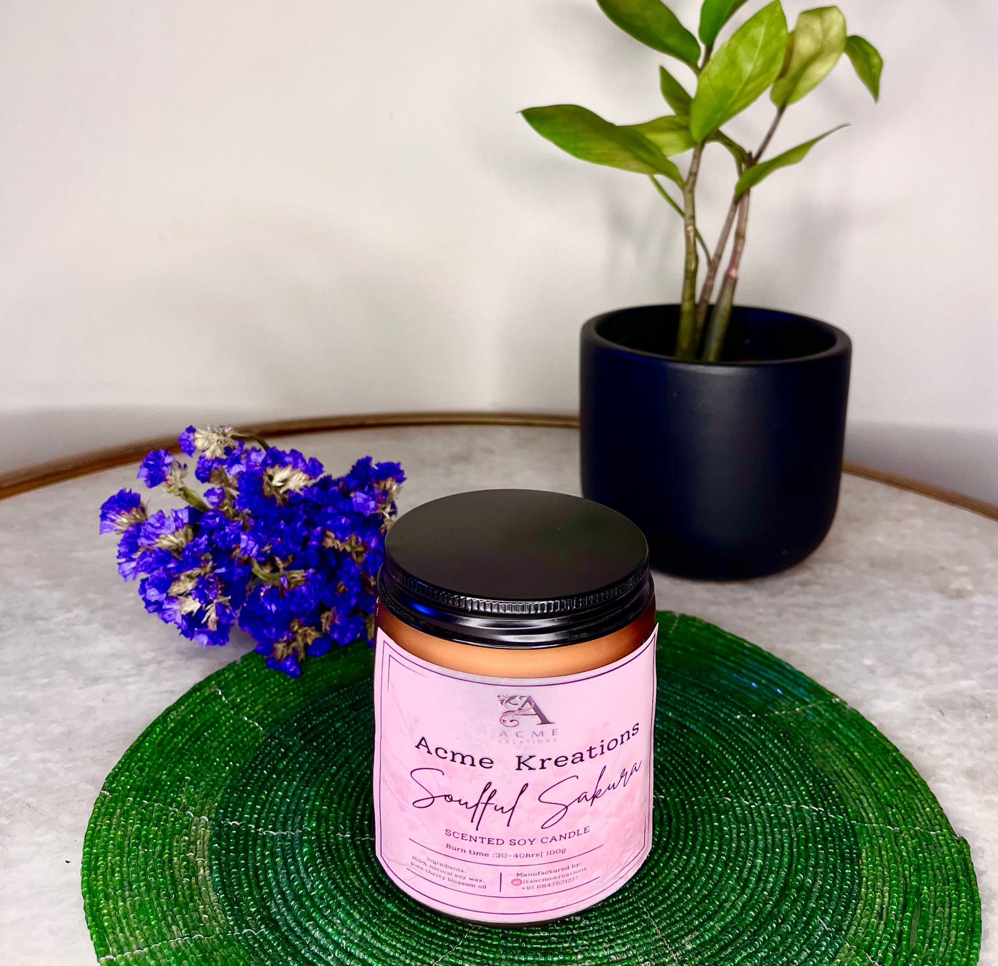 Experience the fleeting beauty with our Soulful Sakura scented candle with delicate notes of cherry blossom petals creating a captivating floral symphony. Transport yourself to a serene Japanese garden in full bloom, where the air is filled with the sweet, ephemeral fragrance of spring. Illuminate your space with the essence of cherry blossoms and embrace moments of grace.